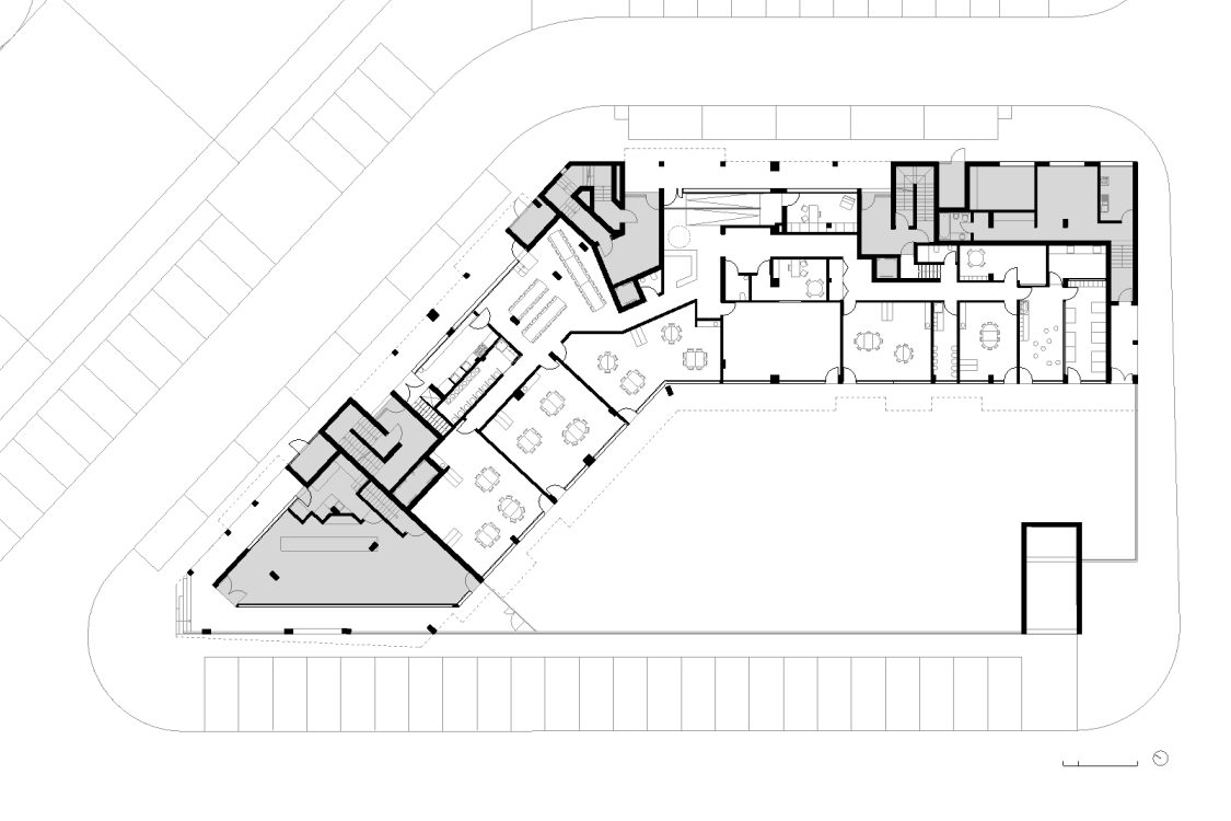 Procurou-se que a creche / jardim de infância fosse um espaço de forte relação com o espaço exterior, de modo a incentivar todo o tipo de actividades lúdicas no exterior do equipamento. Pela configuração dos lotes e pela sua posição em termos urbanos, permite que o espaço exterior seja um espaço autónomo, elevado sobre a rua, permitindo assim maior privacidade e segurança.