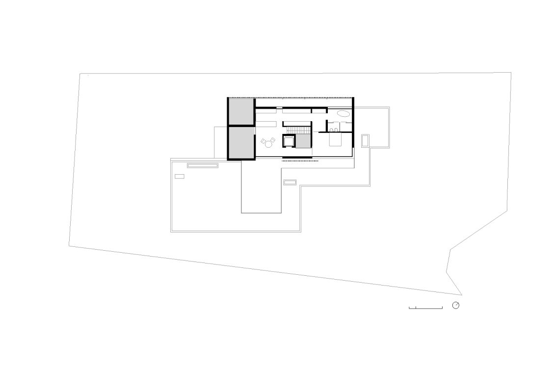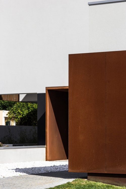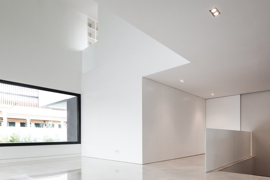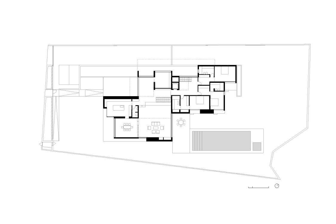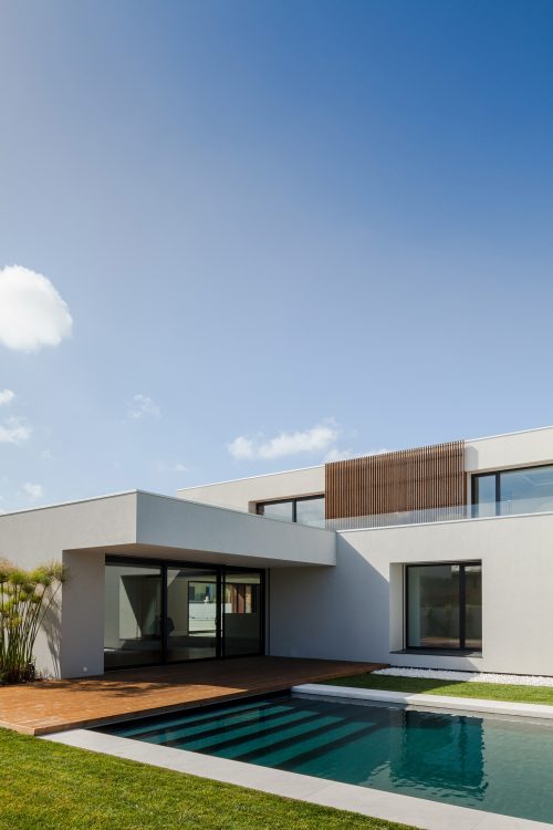 • Aproveitar as mais valias do lote, nomeadamente a orientação solar, o declive ou as amplas vistas foram os factores chave para conseguir uma casa com diferentes ambientes, materialidades e relações com a envolvente. A dimensão considerável do lote permitiu-nos eleger uma localização privilegiada para a implantação da casa; assim, a casa afasta-se do limite norte do lote, permitindo que o espaço verde faça a transição entre a rua e o espaço privado da casa. Os espaços privados da casa são menos expostos ao exterior através de alguns pátios. O alçado norte da casa é mais fechado em termos de aberturas do que o lado sul, onde se encontram as zonas de lazer tais como sala de estar e a piscina.