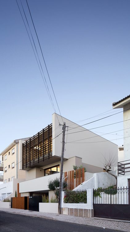 Esta moradia unifamiliar insere-se numa zona urbana consolidada nos anos 60 que se caracteriza por uma grande heterogeneidade construtiva. Dada a configuração exígua do lote, que se estreita a Norte e a Sul com as edificações vizinhas, o projecto foi desenvolvido em altura, acompanhando o perfil natural do terreno e previligiando a abertura de vãos a Nascente e Poente por questões de exposição solar e de privacidade.