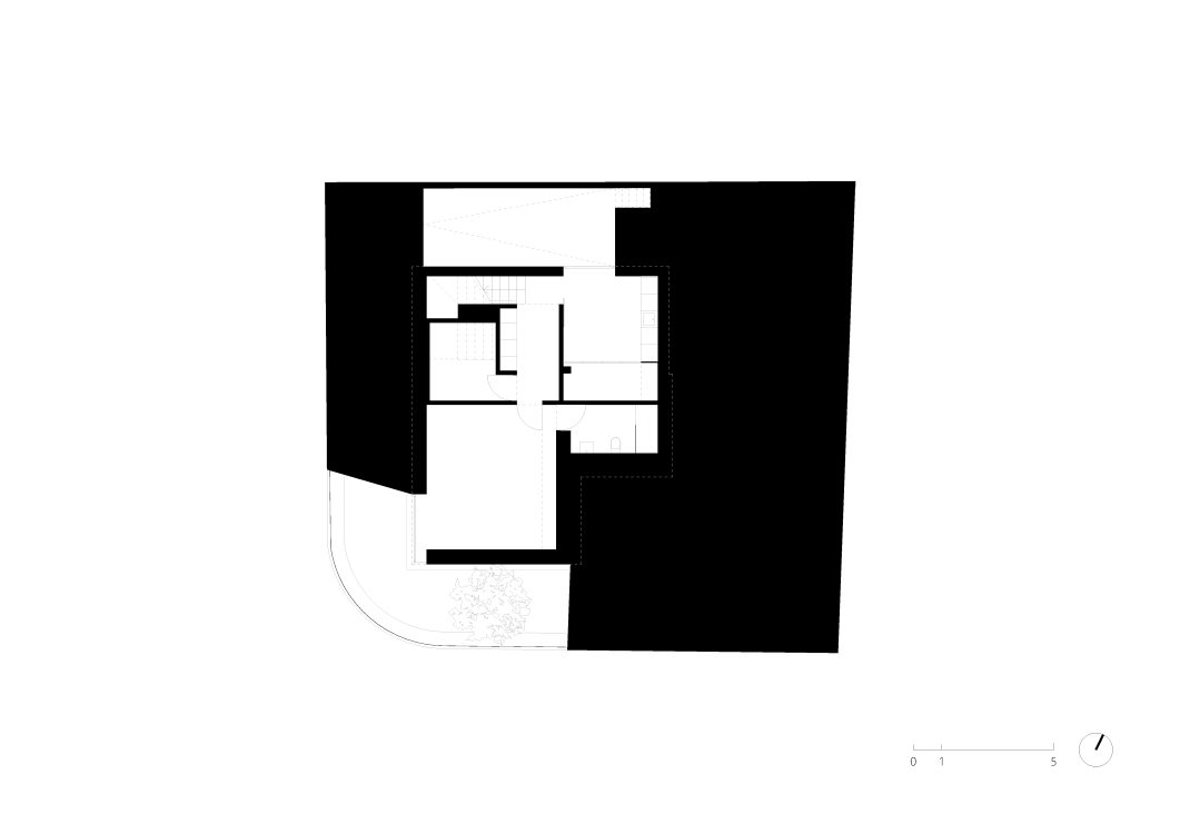 O programa está organizado em 3 pisos. No piso térreo, encontram-se as zonas sociais, no piso superior as zonas de carácter mais privativo da casa, e o piso inferior destina-se a áreas técnicas.