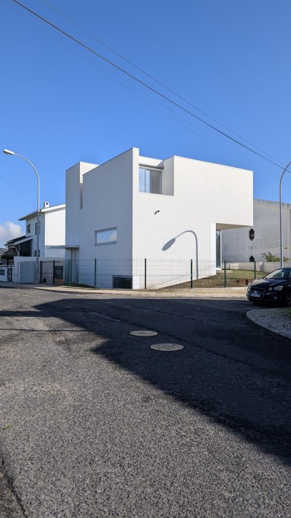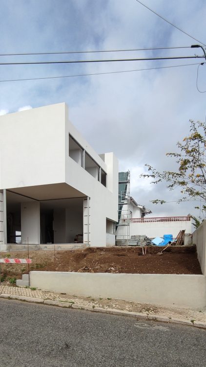 • A moradia está inserida num bairro residencial em Queijas, nos arredores de Lisboa.