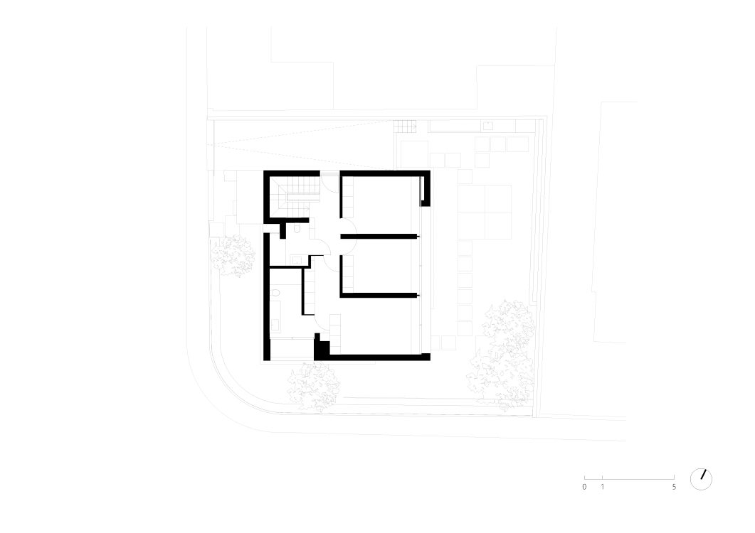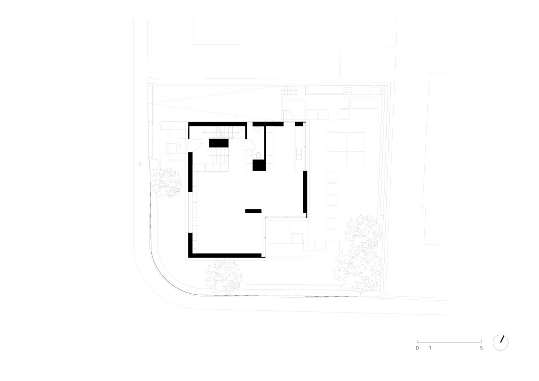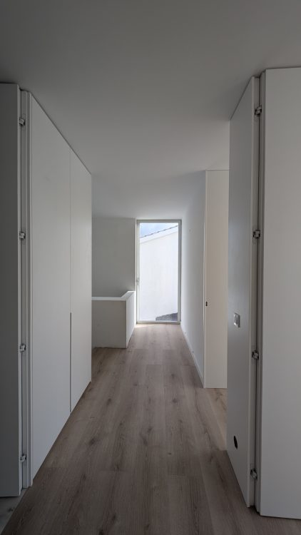 Procurámos que no exterior, a casa fosse simples e precisa, que se vira-se para o interior do lote e que garantisse a privacidade dada a proximidade entre habitações.